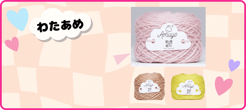 AmuyoのKitは 初心者さんにも作りやすく、経験者さんにも出来上がりの可愛さにワクワクできるものとなっています。可愛い毛糸が完成までの道のりを楽しくさせてくれます。